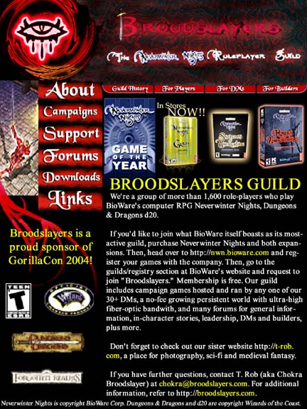 GorillaCon I, March 19-21, 2004 Broodslayers Con Advertisement